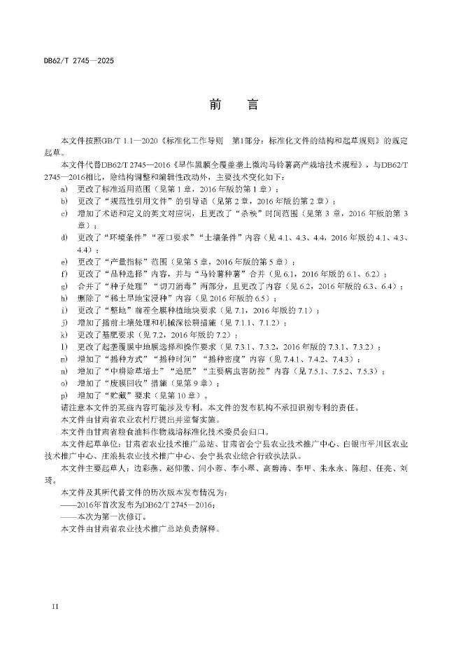 DB62/T 2745-2025 旱作黑膜全覆盖垄上微沟马铃薯高产栽培技术规程