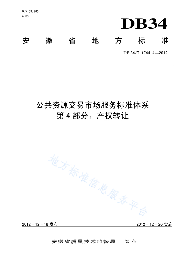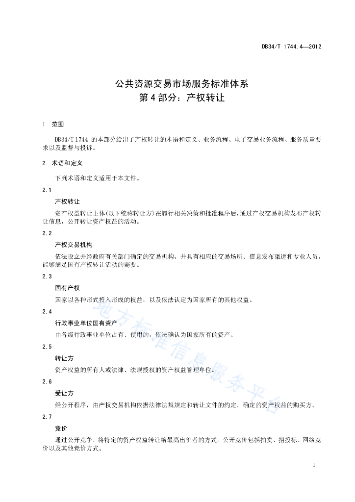 DB34/T 1744.4.4-2012 公共资源交易市场服务标准体系 第4部分:产权转让
