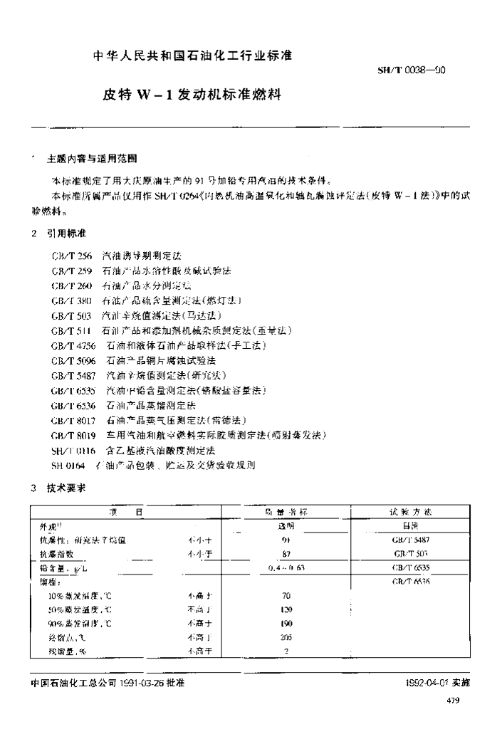SH/T 0038-1990 皮特W-1发动机标准燃料