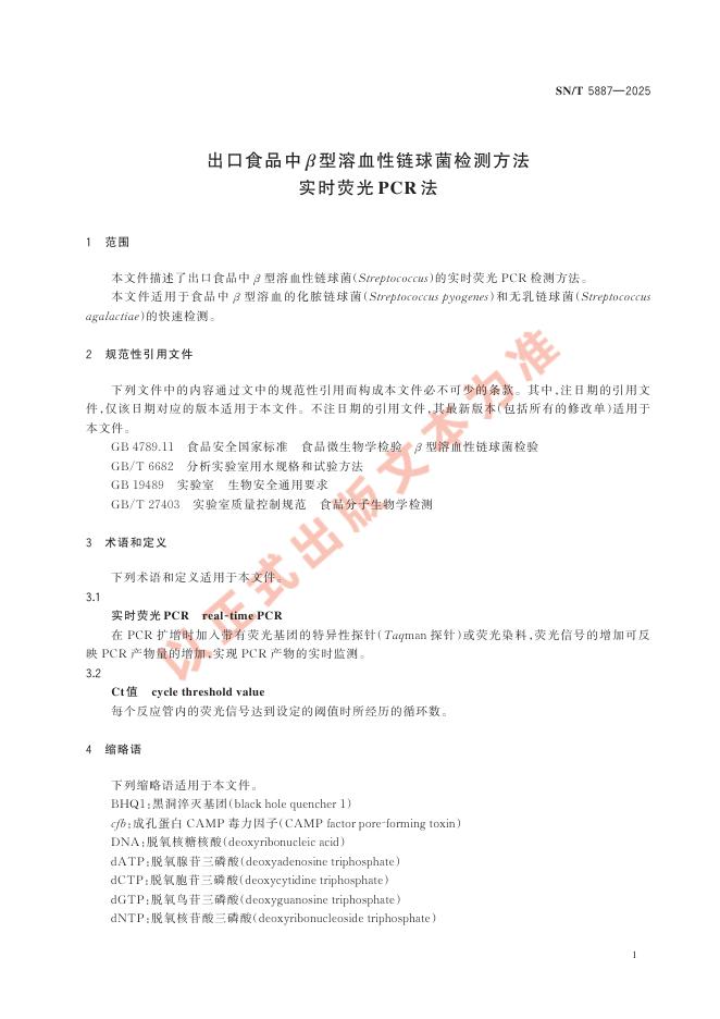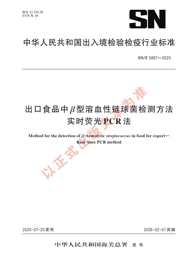 SN/T 5887-2025 出口食品中β型溶血性链球菌检测方法 实时荧光PCR法