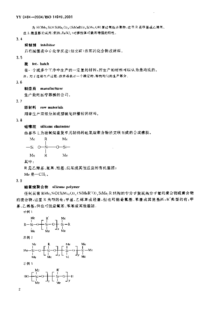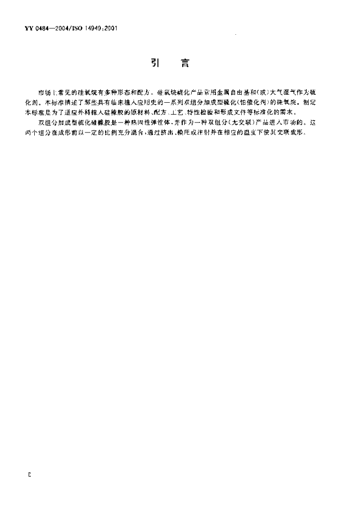 YY 0484-2004/ISO 14949:2001 外科植入物双组分加成型硫化硅橡胶
