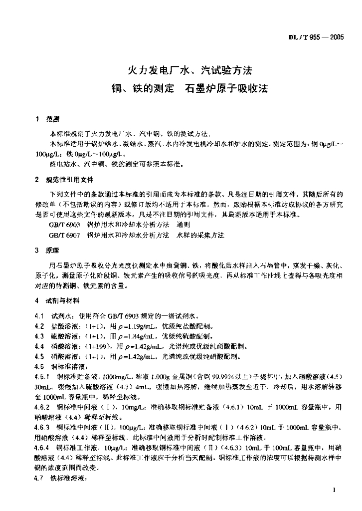 DL/T 955-2005 火力发电厂水、汽试验方法 铜、铁的测定 石墨炉原子吸收法