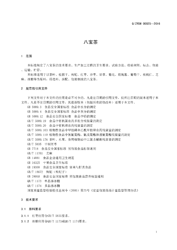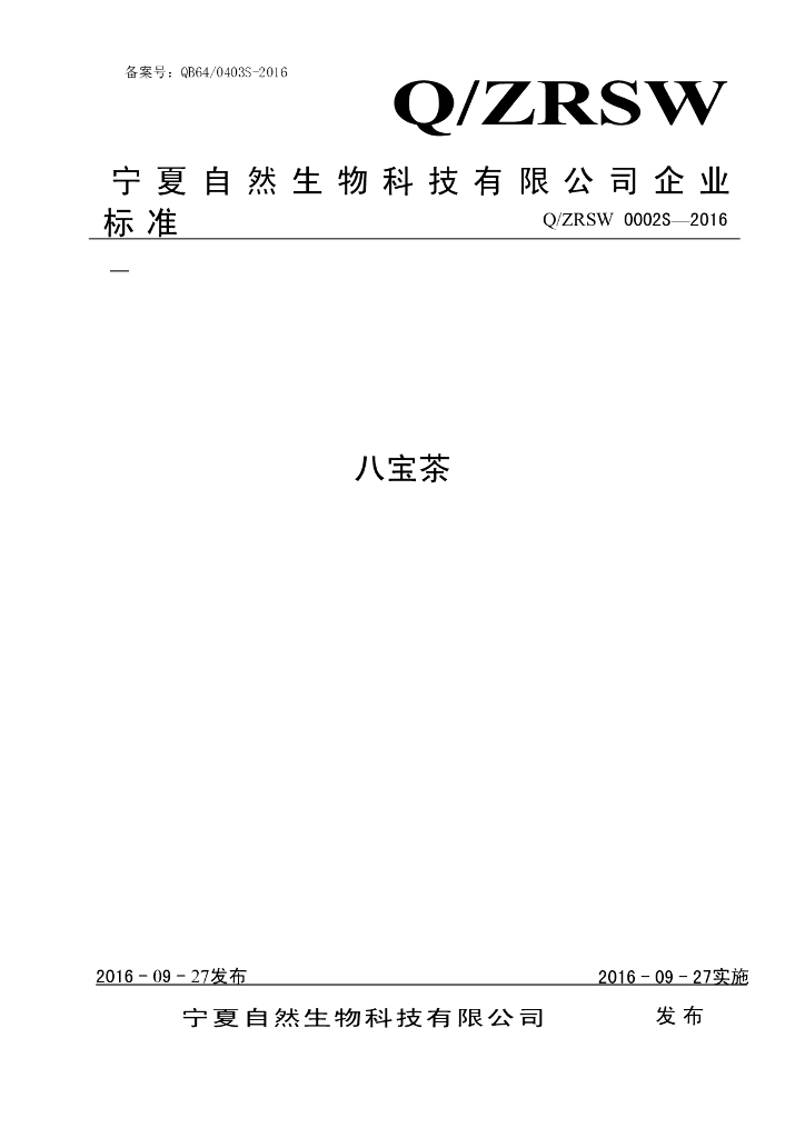 Q/ZRSW 0002S-2016 宁夏自然生物科技有限公司 八宝茶