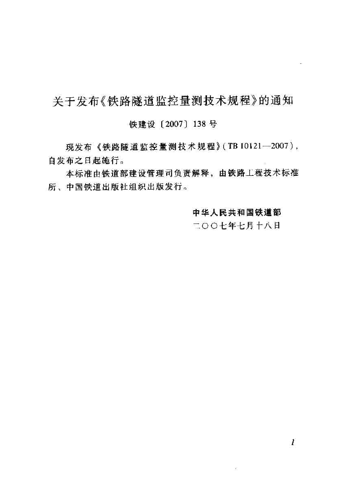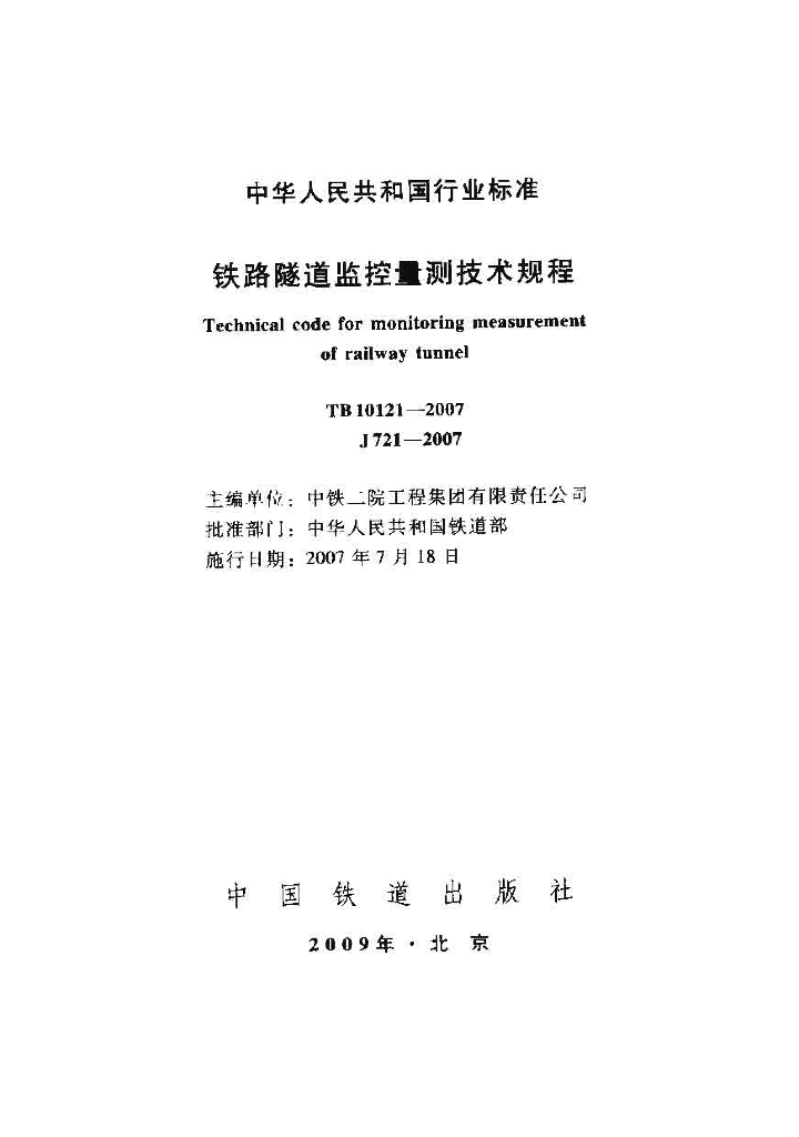 TB 10121-2007 铁路隧道监控量t测技术规程