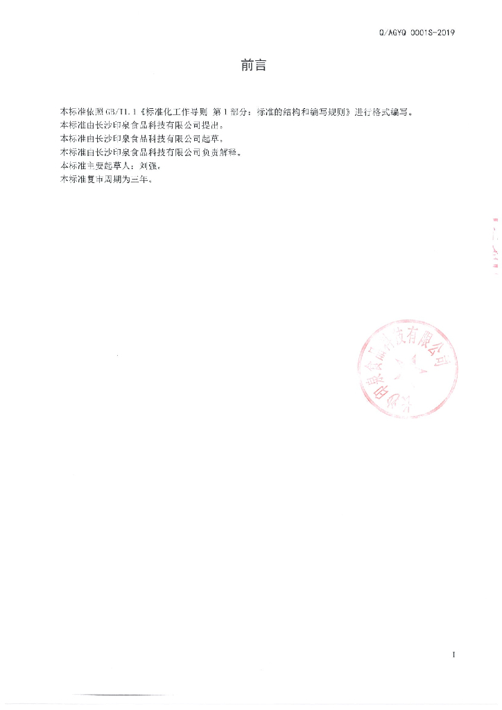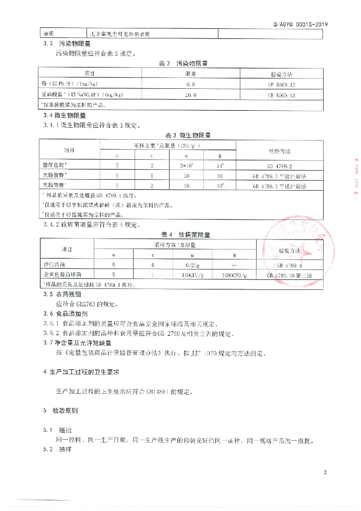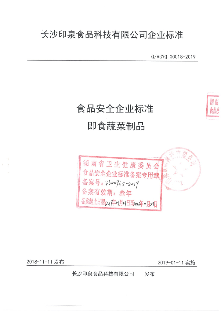 Q/AGYQ 0001S-2019 即食蔬菜制品