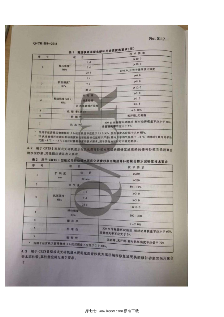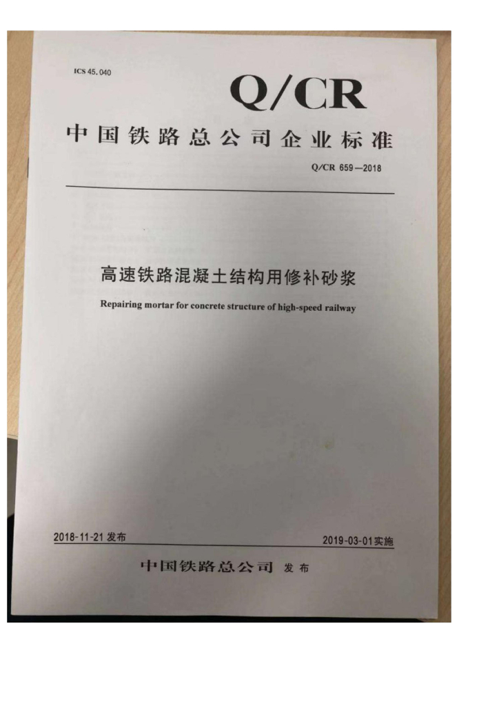 Q/CR 659-2018 高速铁路混凝土结构用修补砂浆