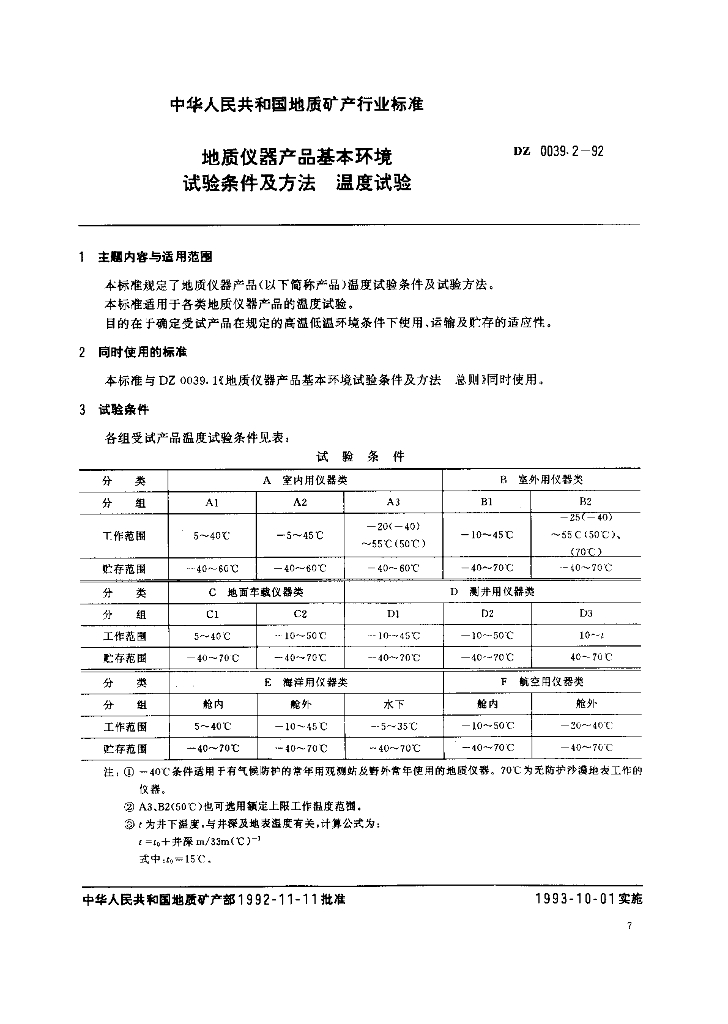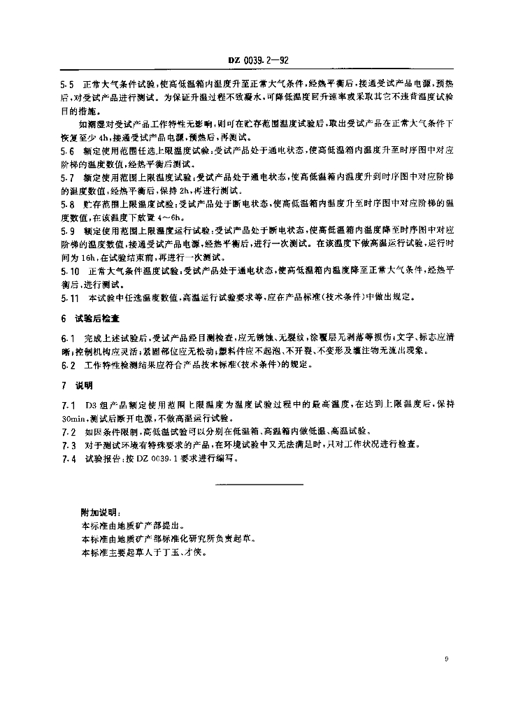 DZ 0039.2-1992 地质仪器产品基本环境 试验条件及方法 温度试验