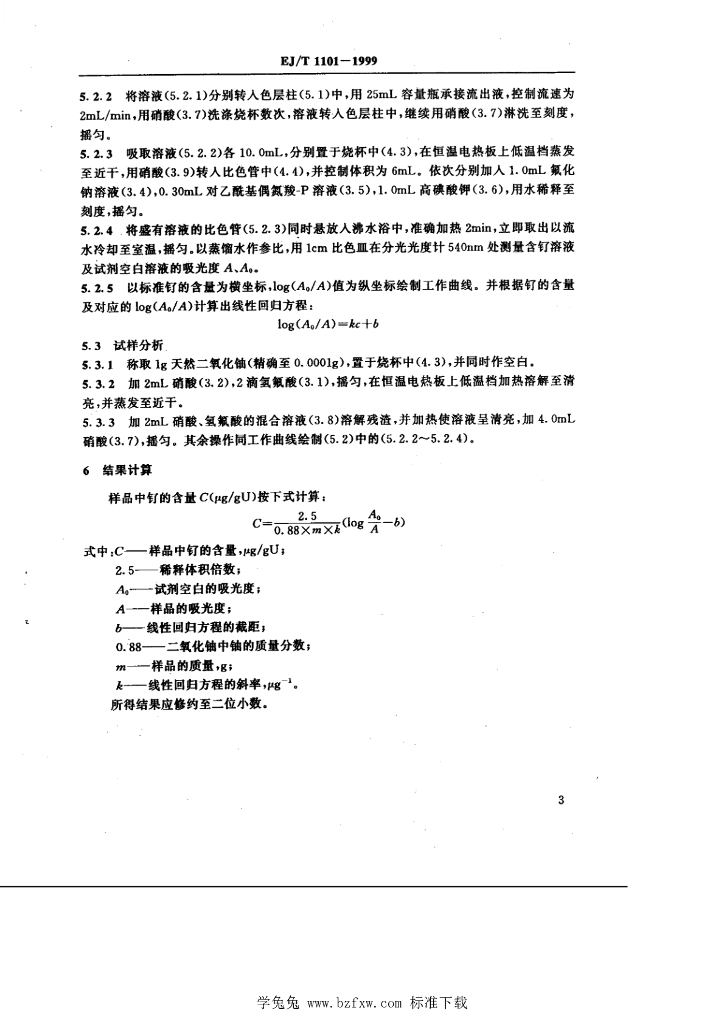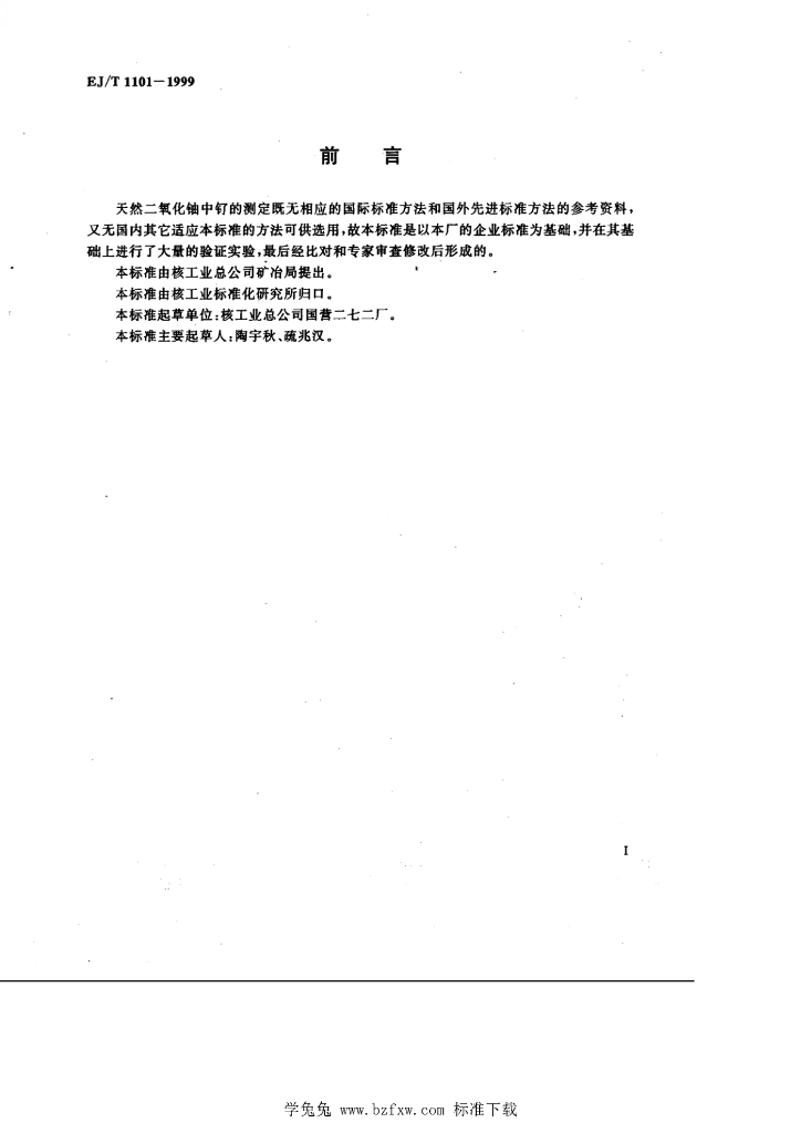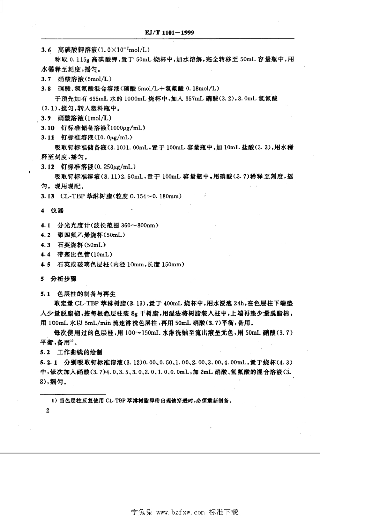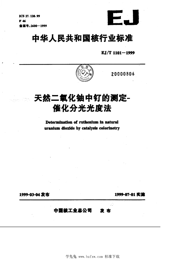 EJ/T 1101-1999 天然二氧化铀中钌的测定— 催化分光光度法