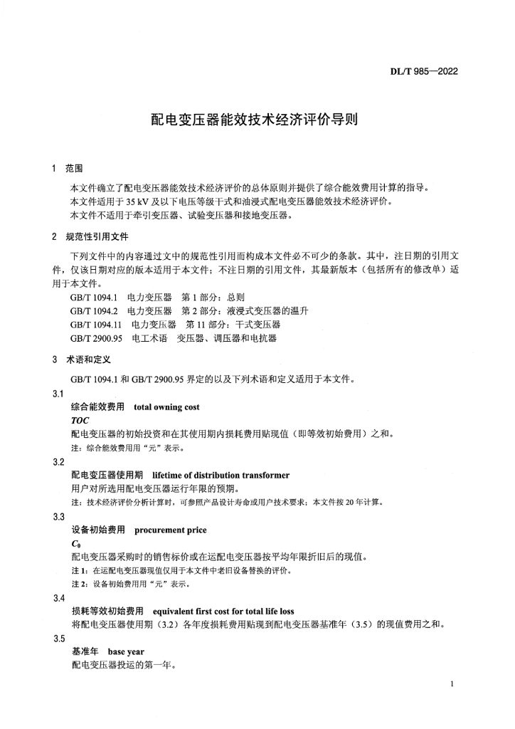 DL/T 985-2022 配电变压器能效技术经济评价导则