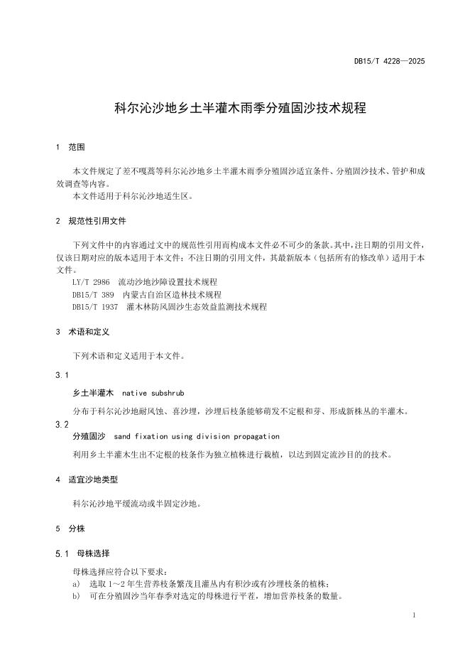 DB15/T 4228-2025 科尔沁沙地乡土半灌木雨季分殖固沙技术规程