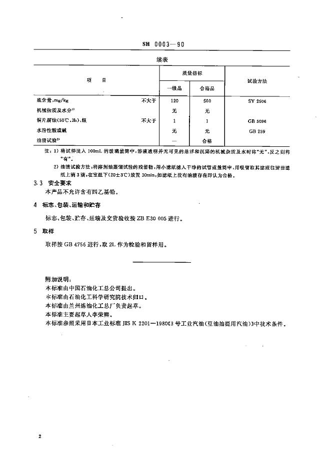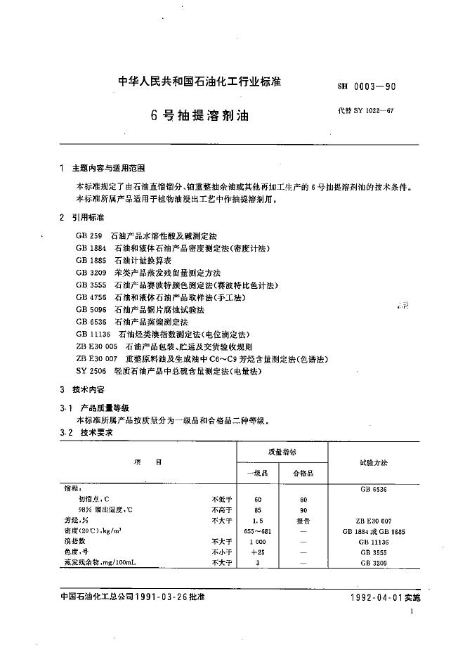 SH 0003-1990 6号抽提溶剂油