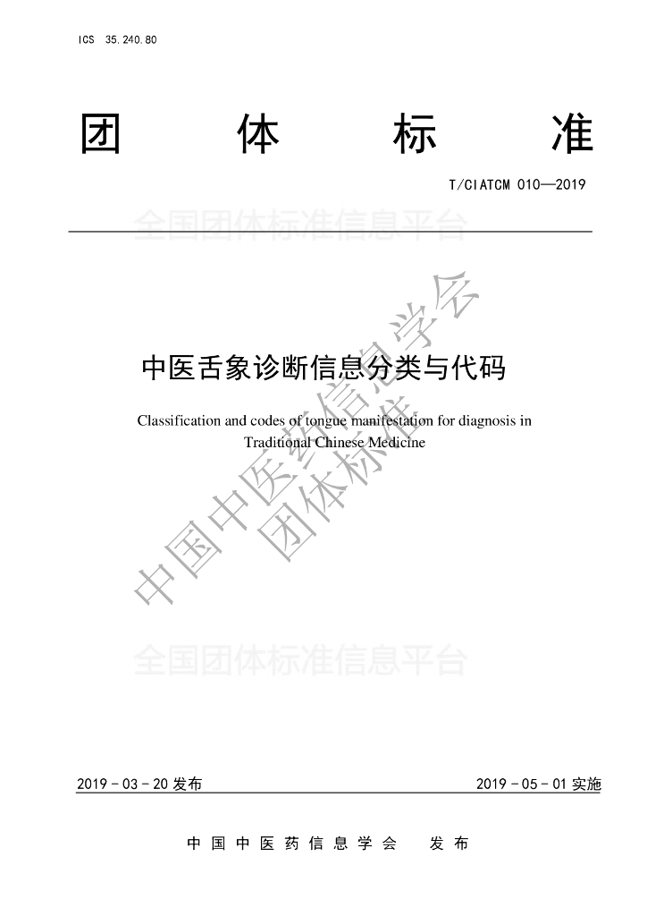 T/CIATCM 010-2019 中医舌象诊断信息分类与代码