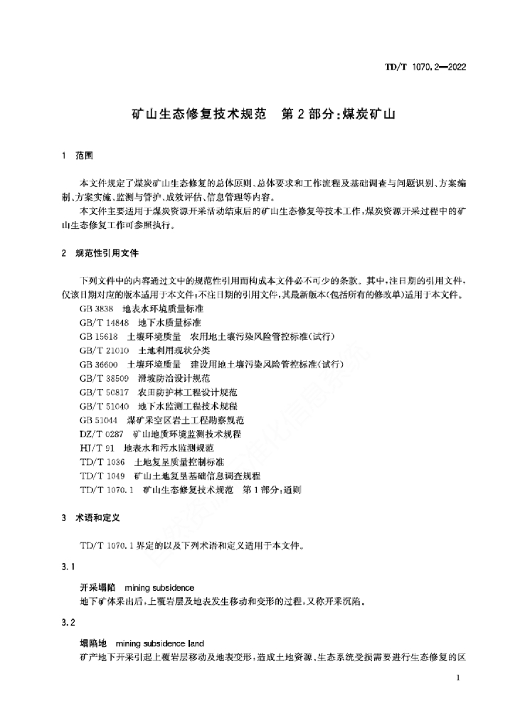 TD/T 1070.2-2022 矿山生态修复技术规范 第2部分:煤炭矿山