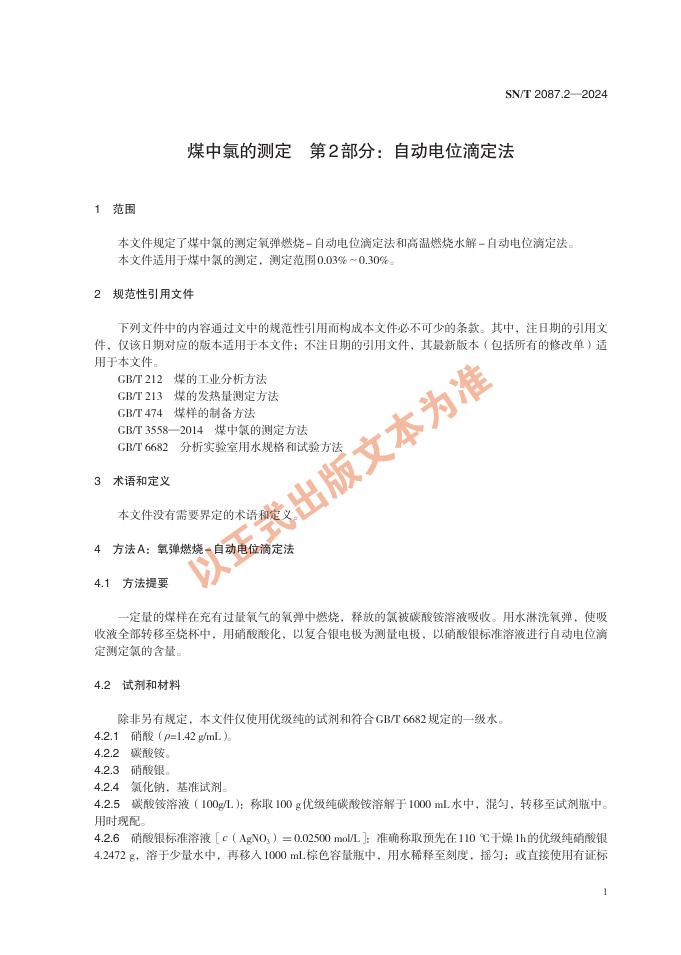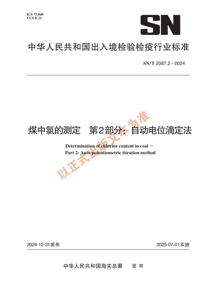 SN/T 2087.2-2024 煤中氯的测定 第2部分:自动电位滴定法
