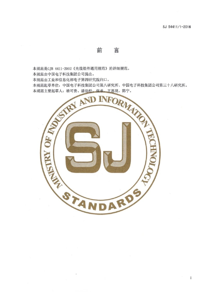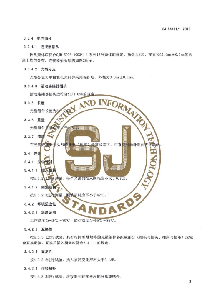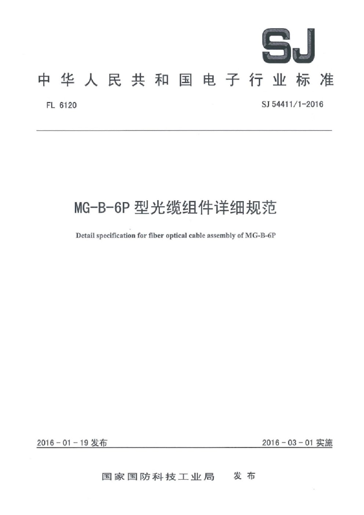 SJ 54411/1-2016 MG-B-6P型光缆组件详细规范