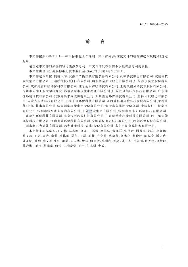 GB/T 46604-2025 膜生物反应器有机平板膜组器