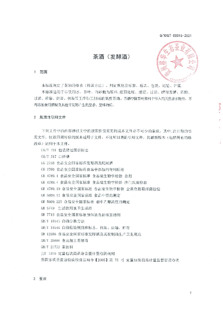 Q/XHST 0001S-2021 茶酒(发酵酒)