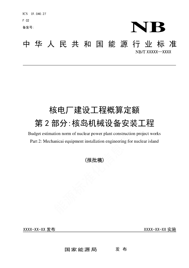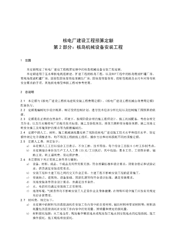 NB/T 20580.2-2021 核电厂建设工程概算定额 第2部分:核岛机械设备安装工程