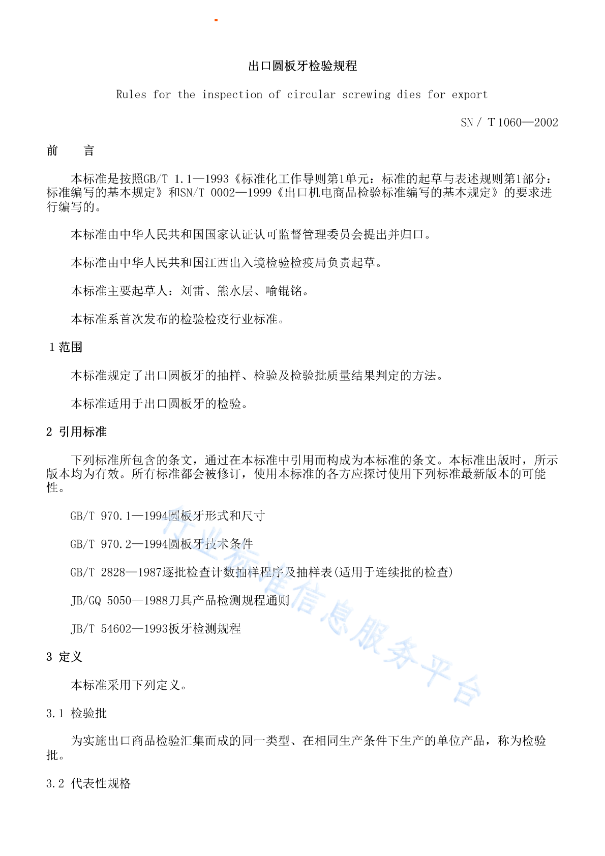 SN/T 1060-2002 出口圆板牙检验规程