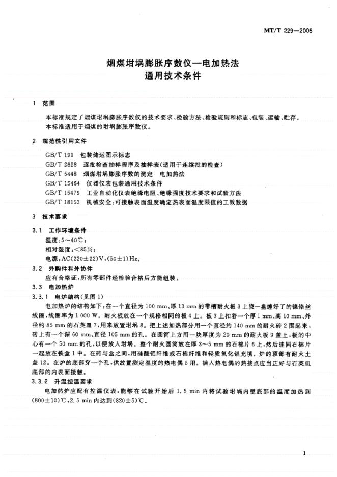 MT 229-1990 烟煤坩锅膨胀序数测定仪技术条件
