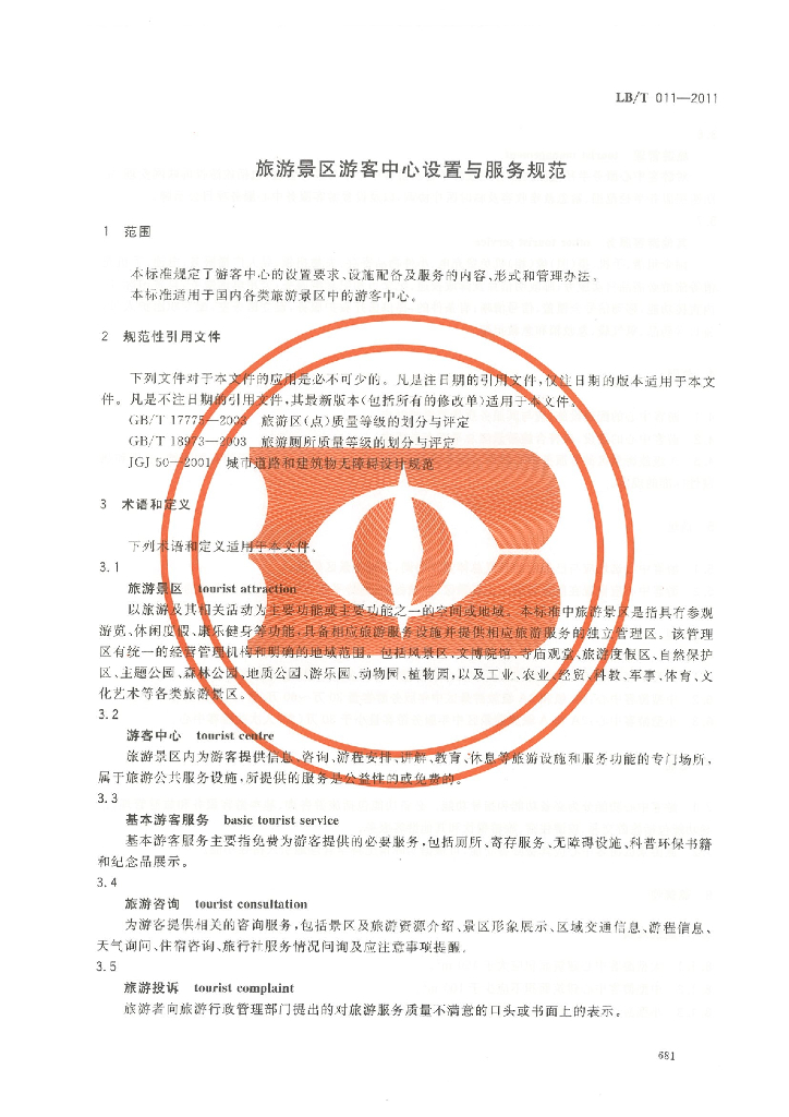 LB/T 011-2011 旅游景区游客中心设施与服务规范