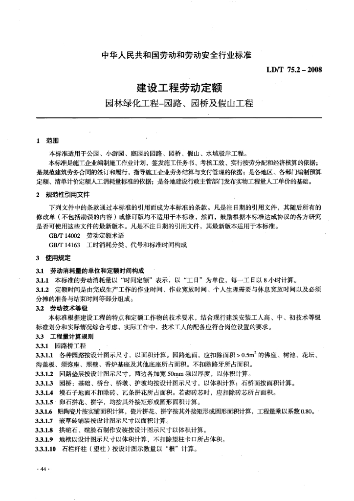 LD/T 75.2-2008 园林绿化工程-园路、园桥及假山工程
