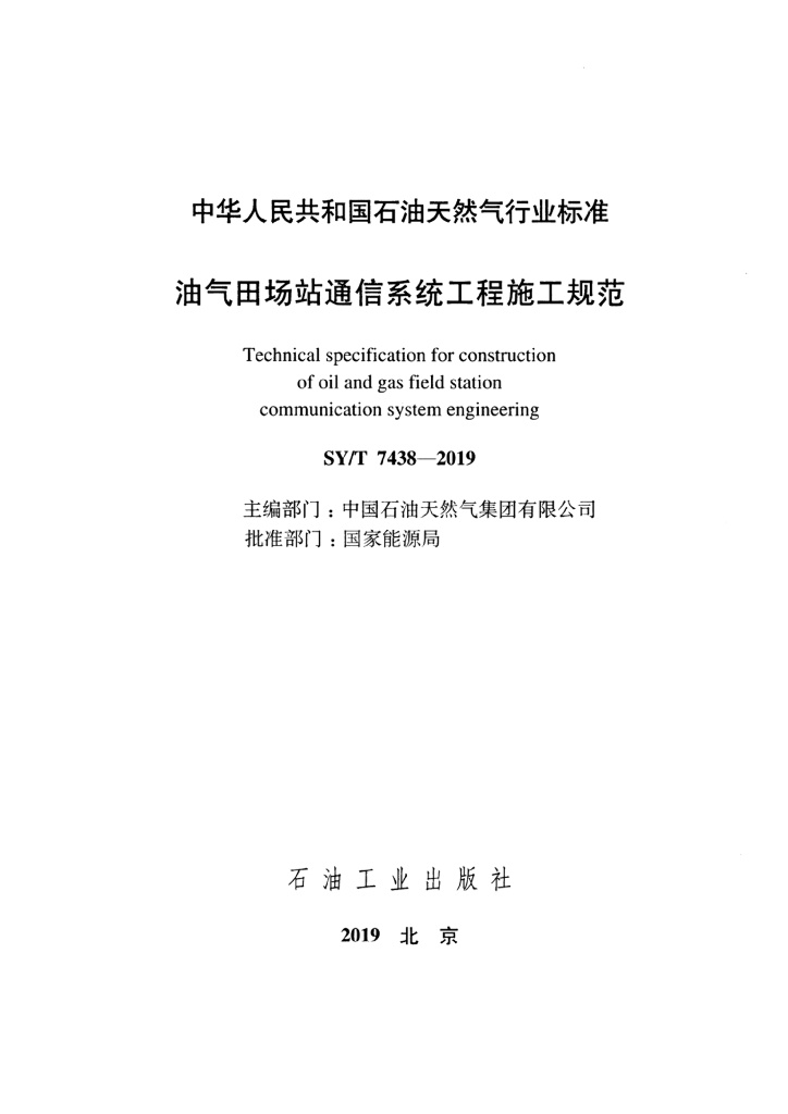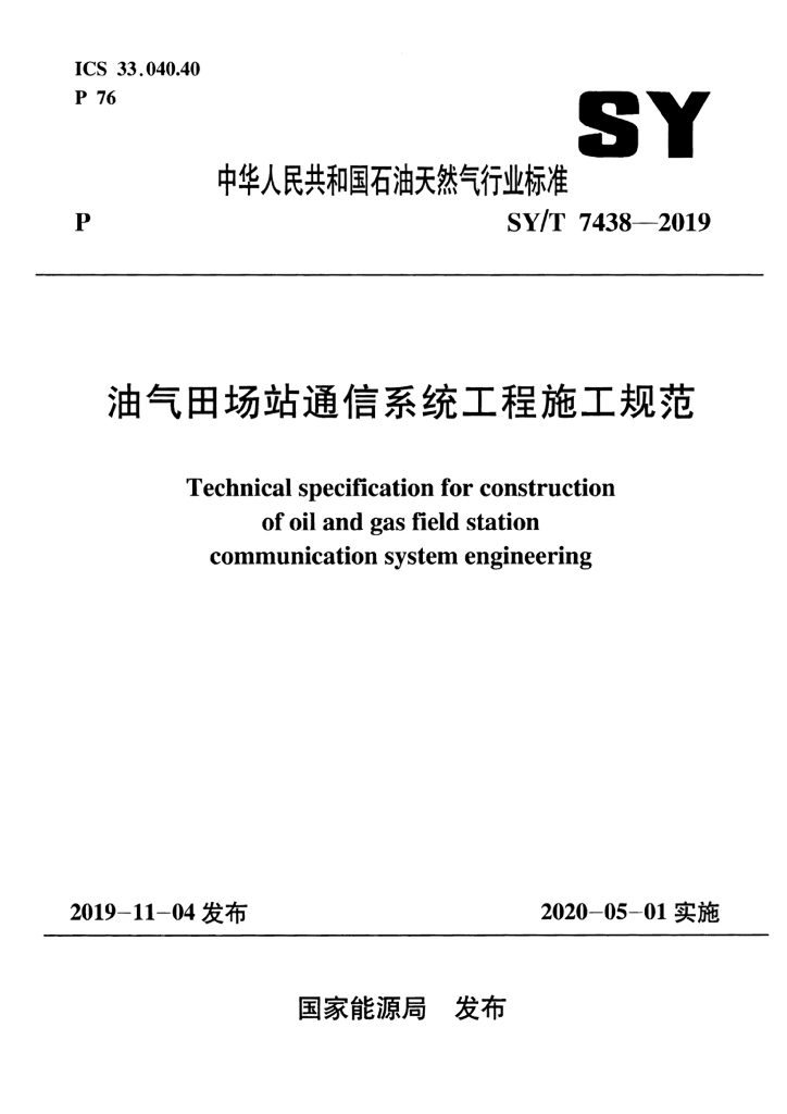 SY/T 7438-2019 油气田场站通信系统工程施工规范