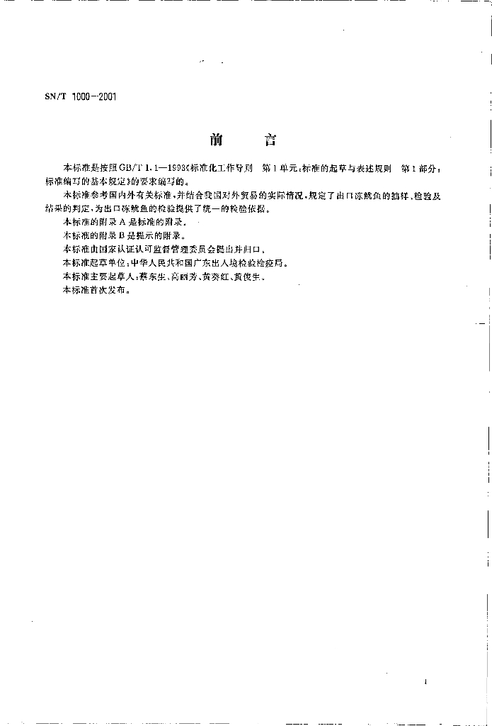 SN/T 1000-2001 出口冻鱿鱼检验规程