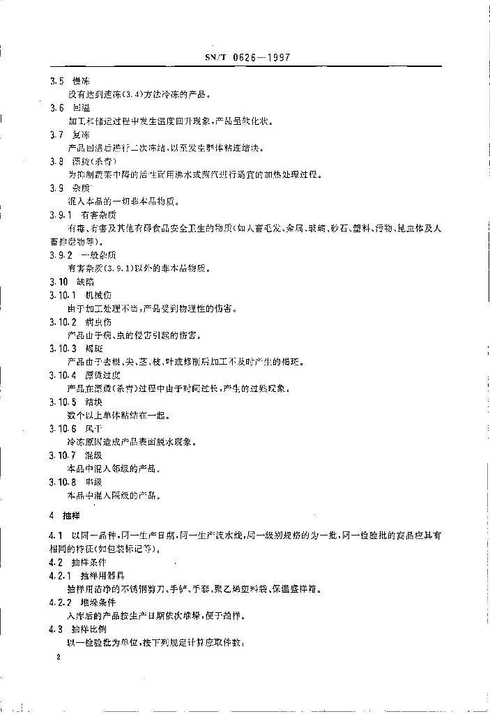 SN/T 0626-1997 出口速冻蔬菜检验规程