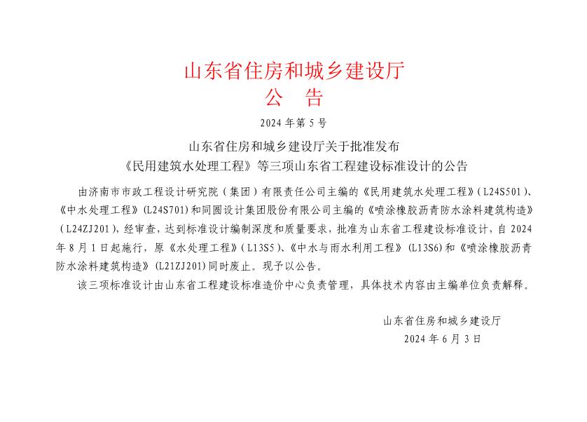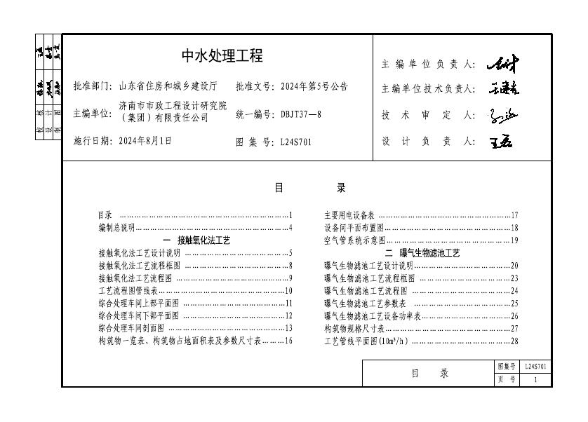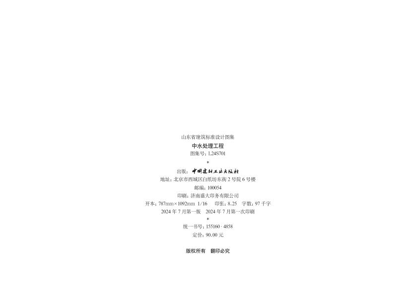 L24S701 中水处理工程设计图集(山东省建筑标准设计图集)