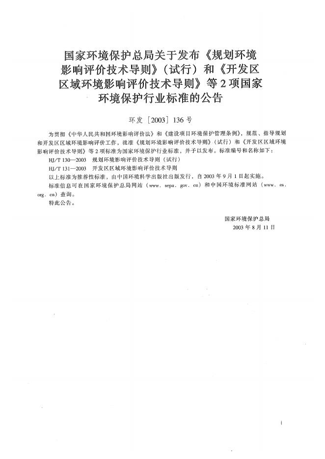 HJ/T 131-2003 开发区区域环境影响评价技术导则