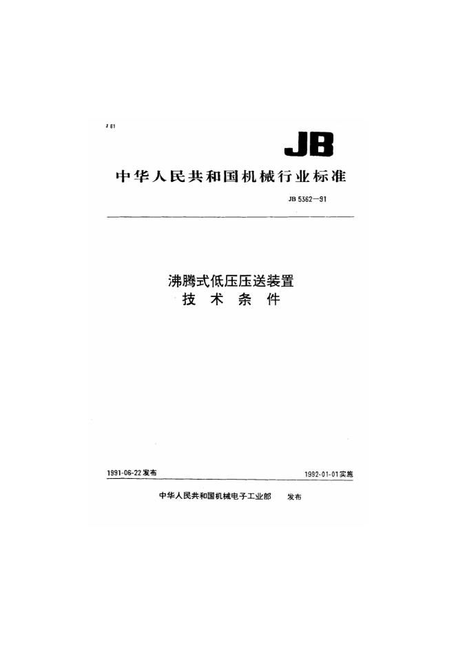 JB 5362-1991 沸腾式低压压送装置 技术条件