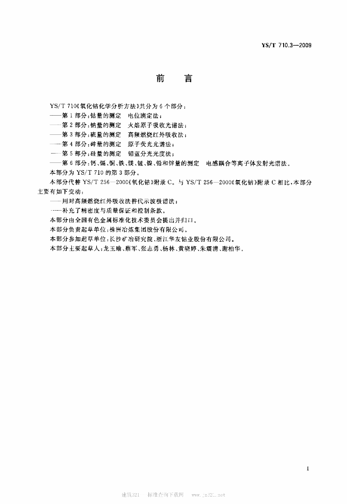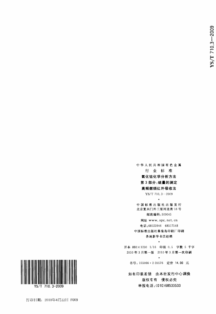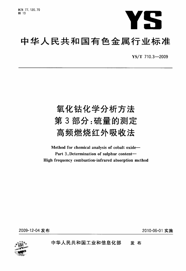 YS/T 710.3-2009 氧化钴化学分析方法 第3部分:硫量的测定 高频燃烧红外吸收法
