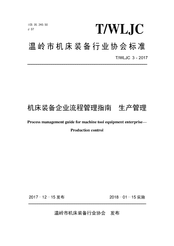 T/WLJC 3-2017 机床装备企业流程管理指南 生产管理