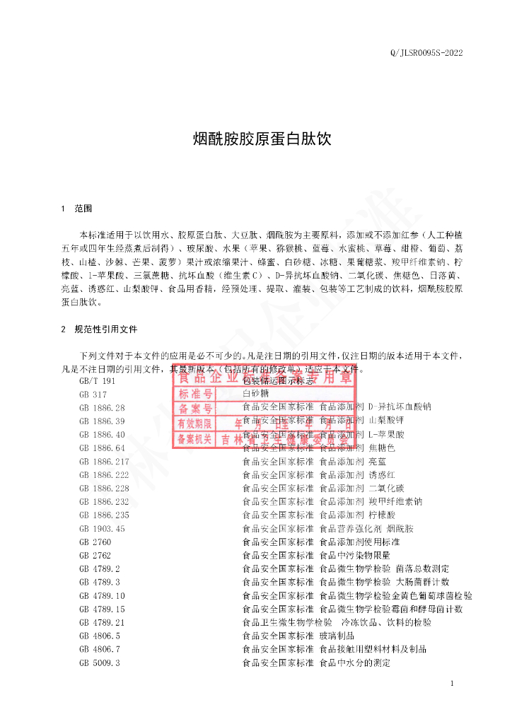 Q/JLSR 0095S-2022 烟酰胺胶原蛋白肽饮