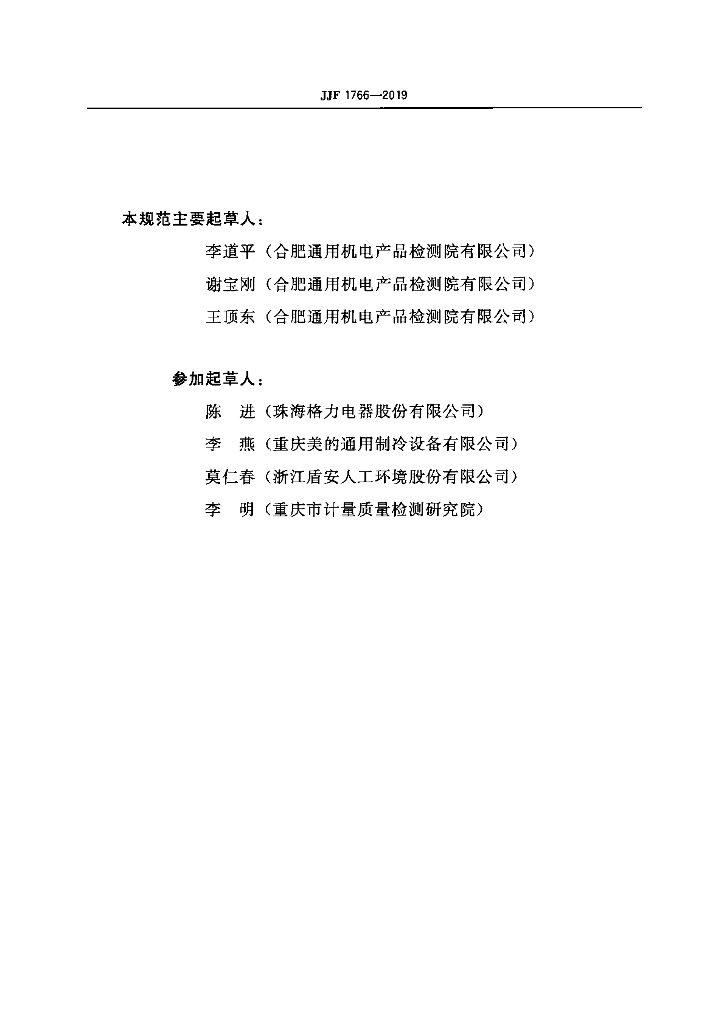 李道平(合肥通用机电产品检测院有限公司)、谢宝刚(合肥通用机电产品检测院有限公司)、王顶东(合肥通用机电产品检测院有限公司)、陈进(珠海格力电器股份有限公司)、李燕(重庆美的通用制冷设备有限公司)、莫仁春(浙江盾安人工环境股份有限公司)、李明(重庆市计量质量检测研究院)