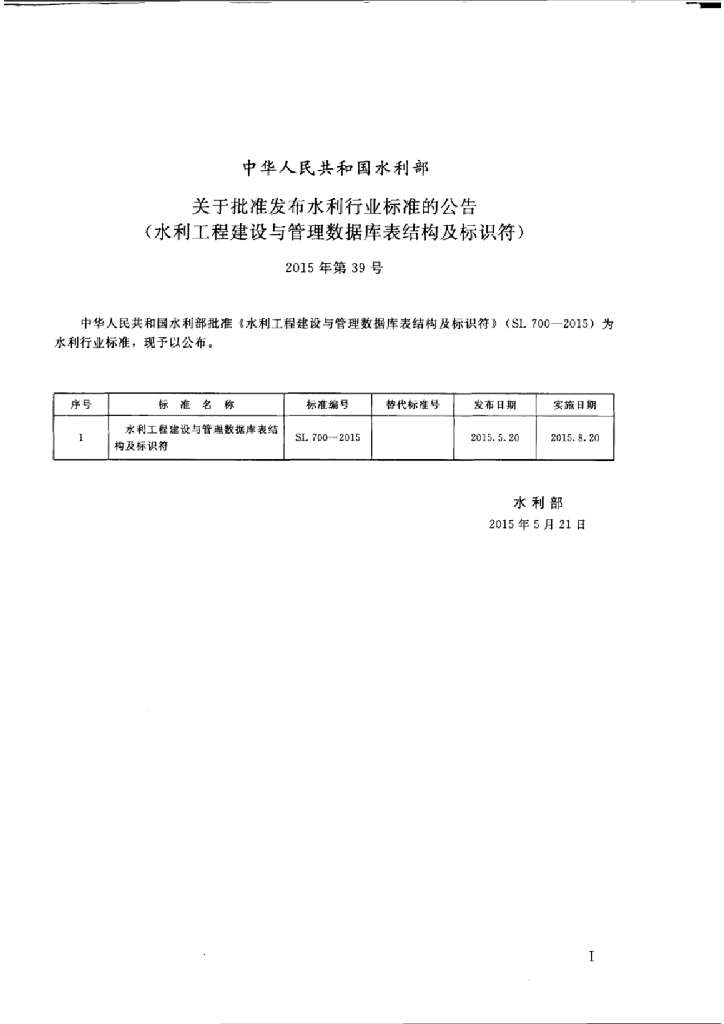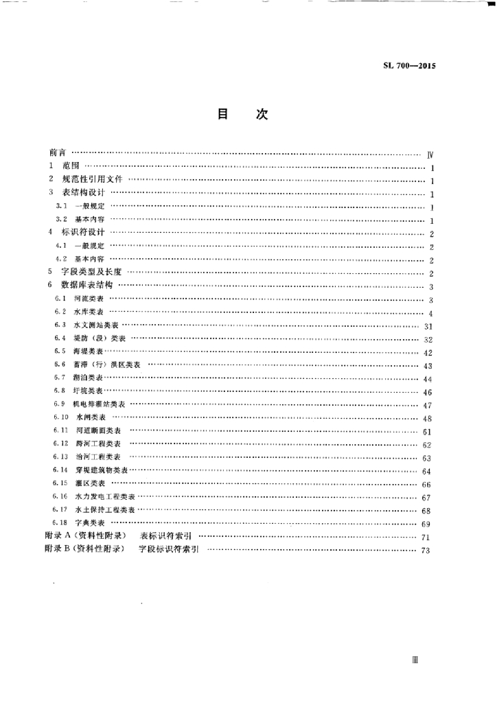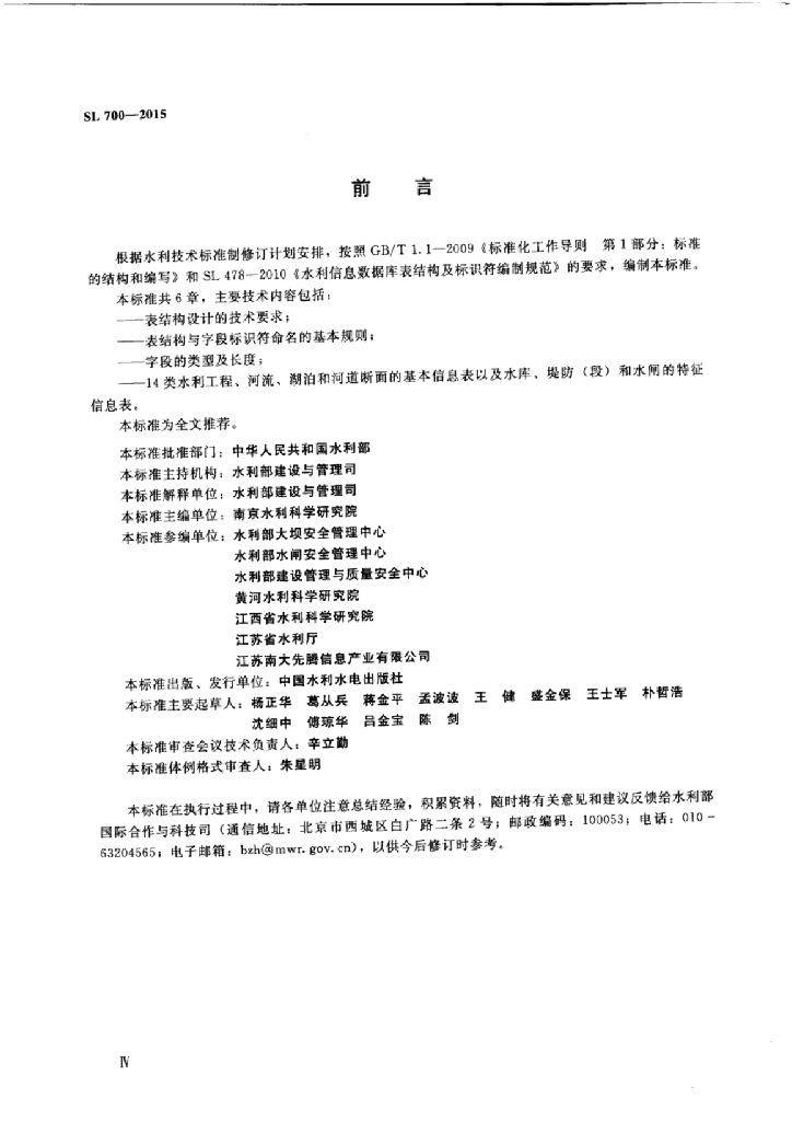 SL/T 700-2015 水利工程建设与管理数据库表结构及标识符
