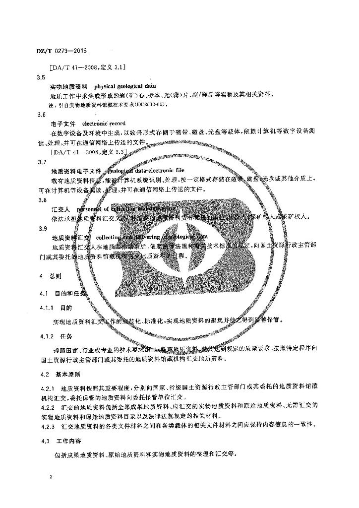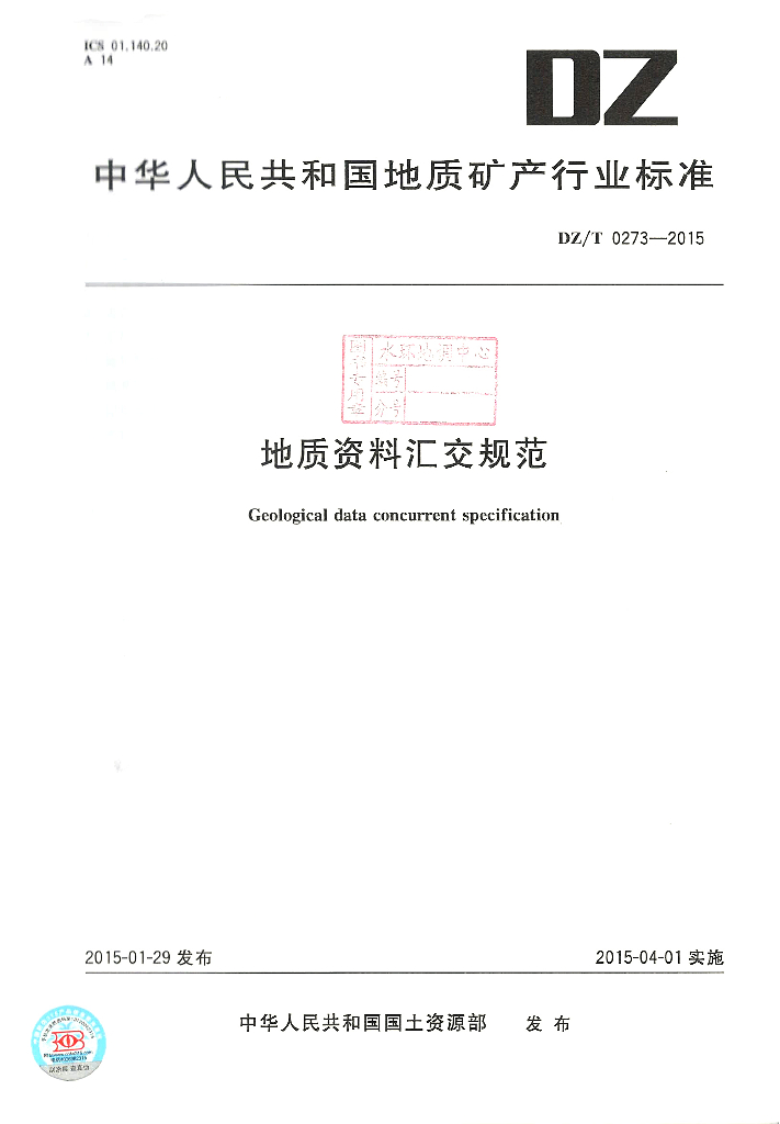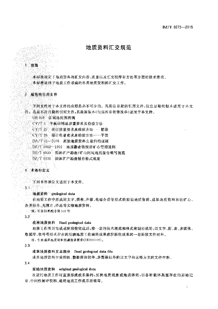DZ/T 0273-2015 地质资料汇交规范