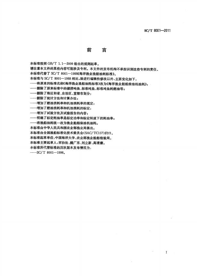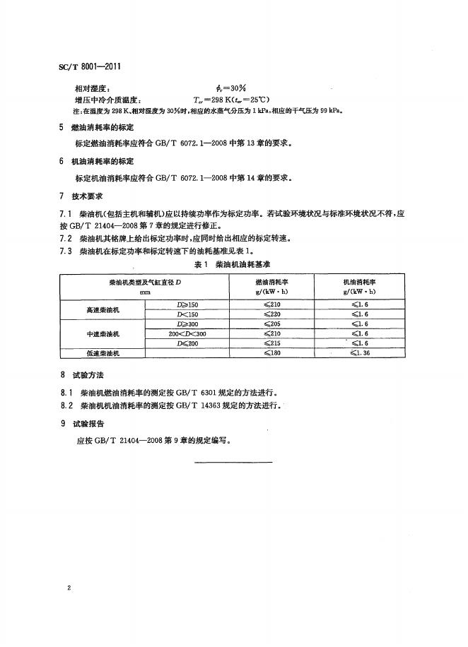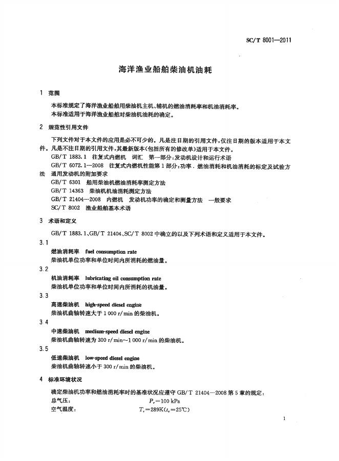 SC/T 8001-2011 海洋渔业船舶柴油机油耗