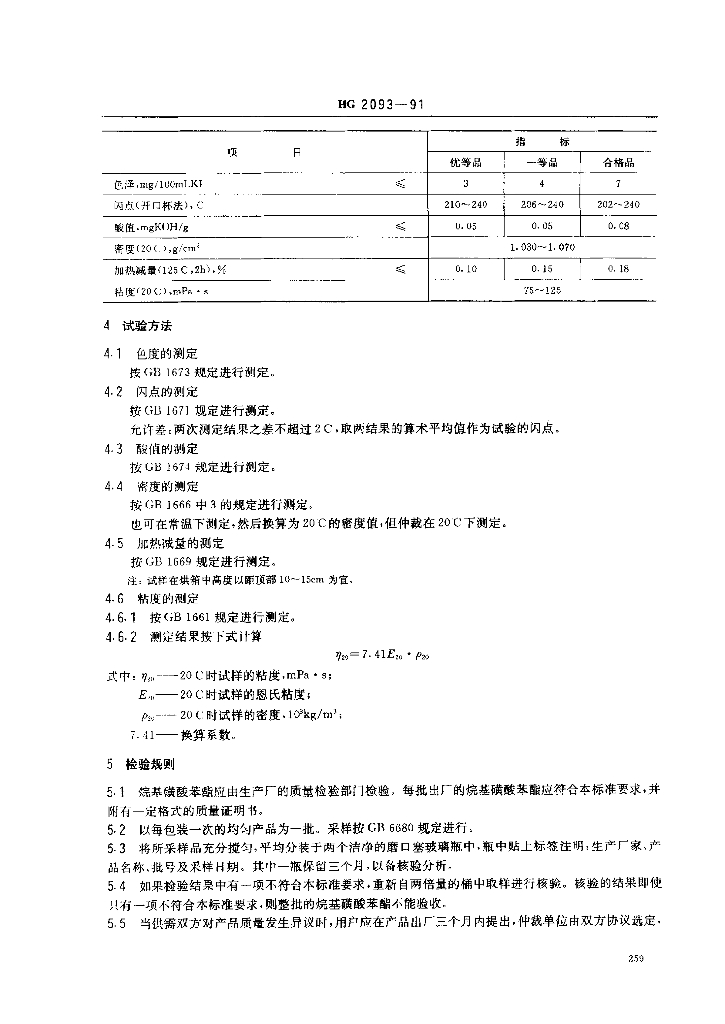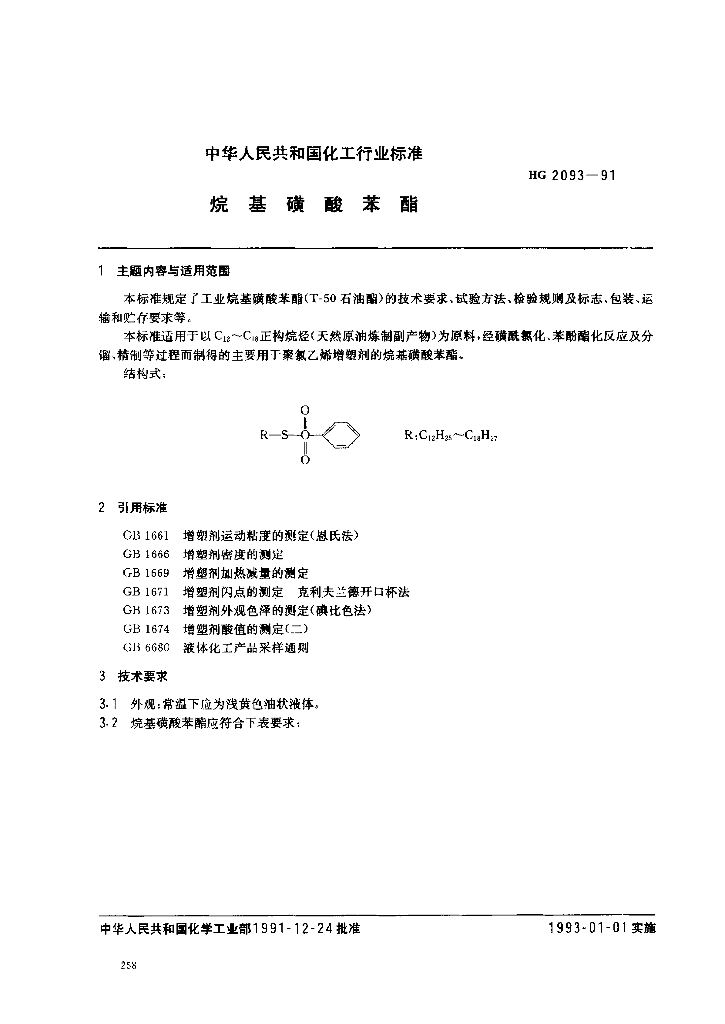 HG/T 2093-1991 烷基磺酸苯酯