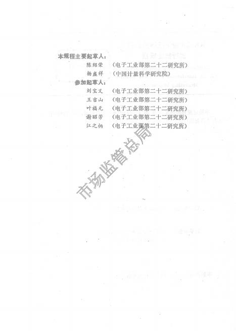 陈绍荣(电子工业部第二十二研究所)、杨盛祥(中国计量科学研究院)、刘宝义(电子工业部第二十二研究所)、王吉山(电子工业部第二十二研究所)、叶福元(电子工业部第二十二研究所)、谢昭芳(电子工业部第二十二研究所)、江之柄(电子工业部第二十二研究所)