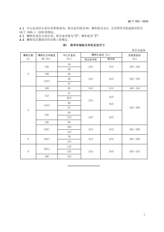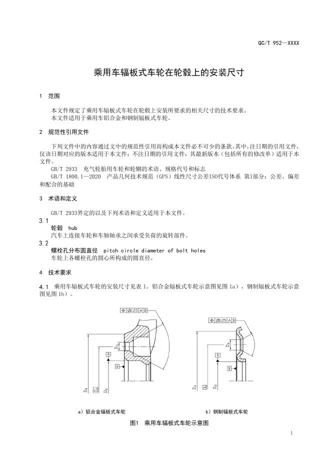 QC/T 952-2025 乘用车辐板式车轮在轮毂上的安装尺寸