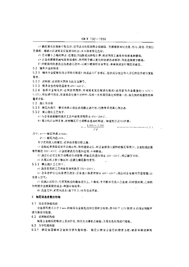 CB/T 102-1996 锡基合金轴瓦铸造技术条件