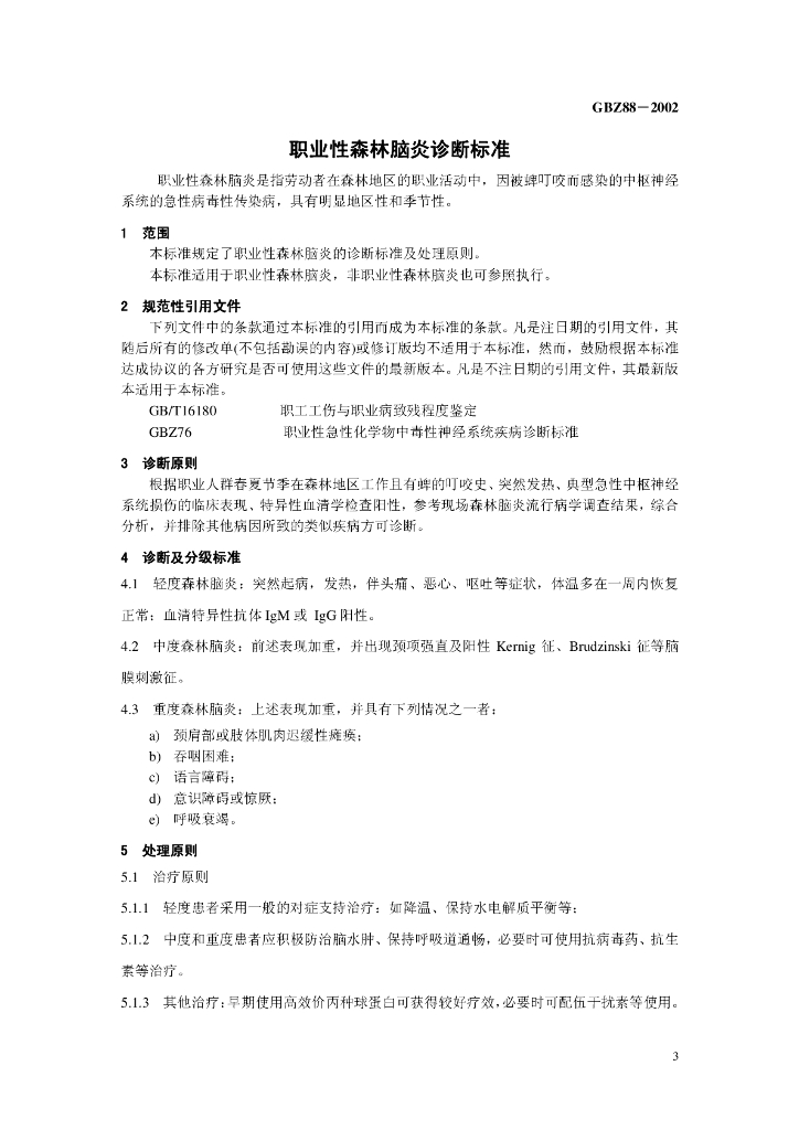 GBZ 88-2002 职业性森林脑炎诊断标准
