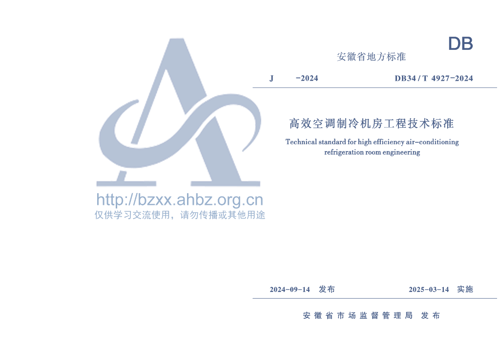 DB34/T 4927-2024 高效空调制冷机房工程技术标准