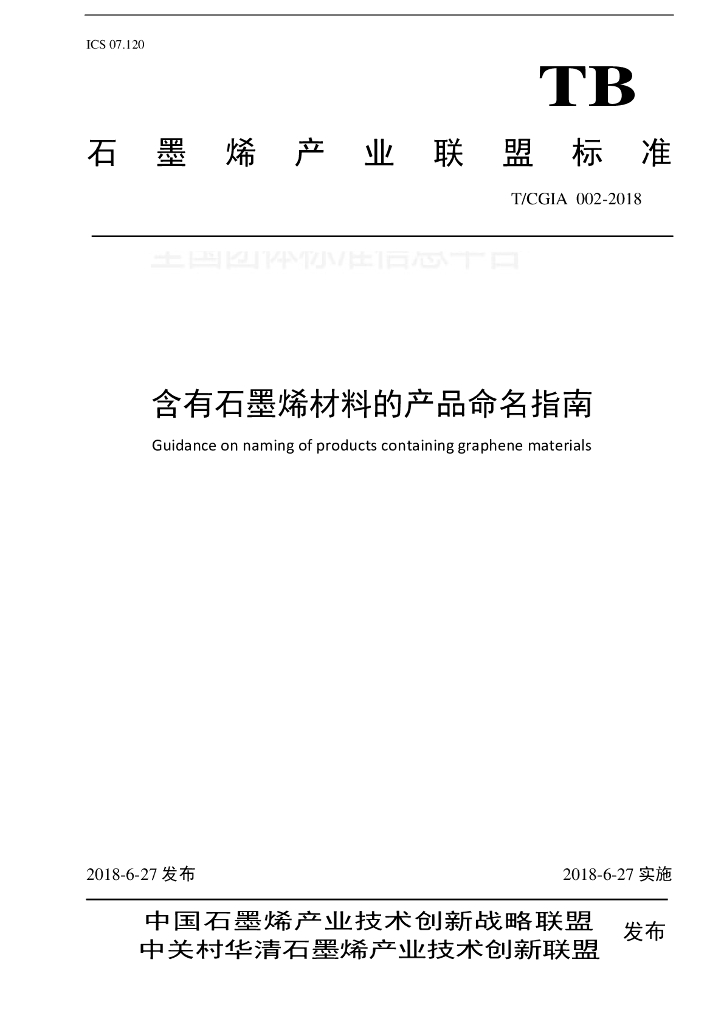 - 团体名称:中关村华清石墨烯产业技术创新联盟