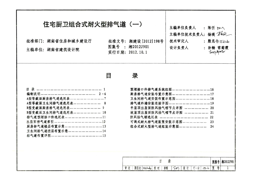 湘2012J901 住宅厨卫组合式耐火型排气道(一)图集
