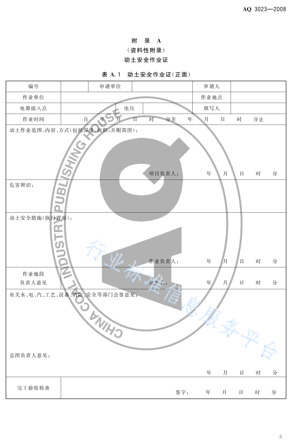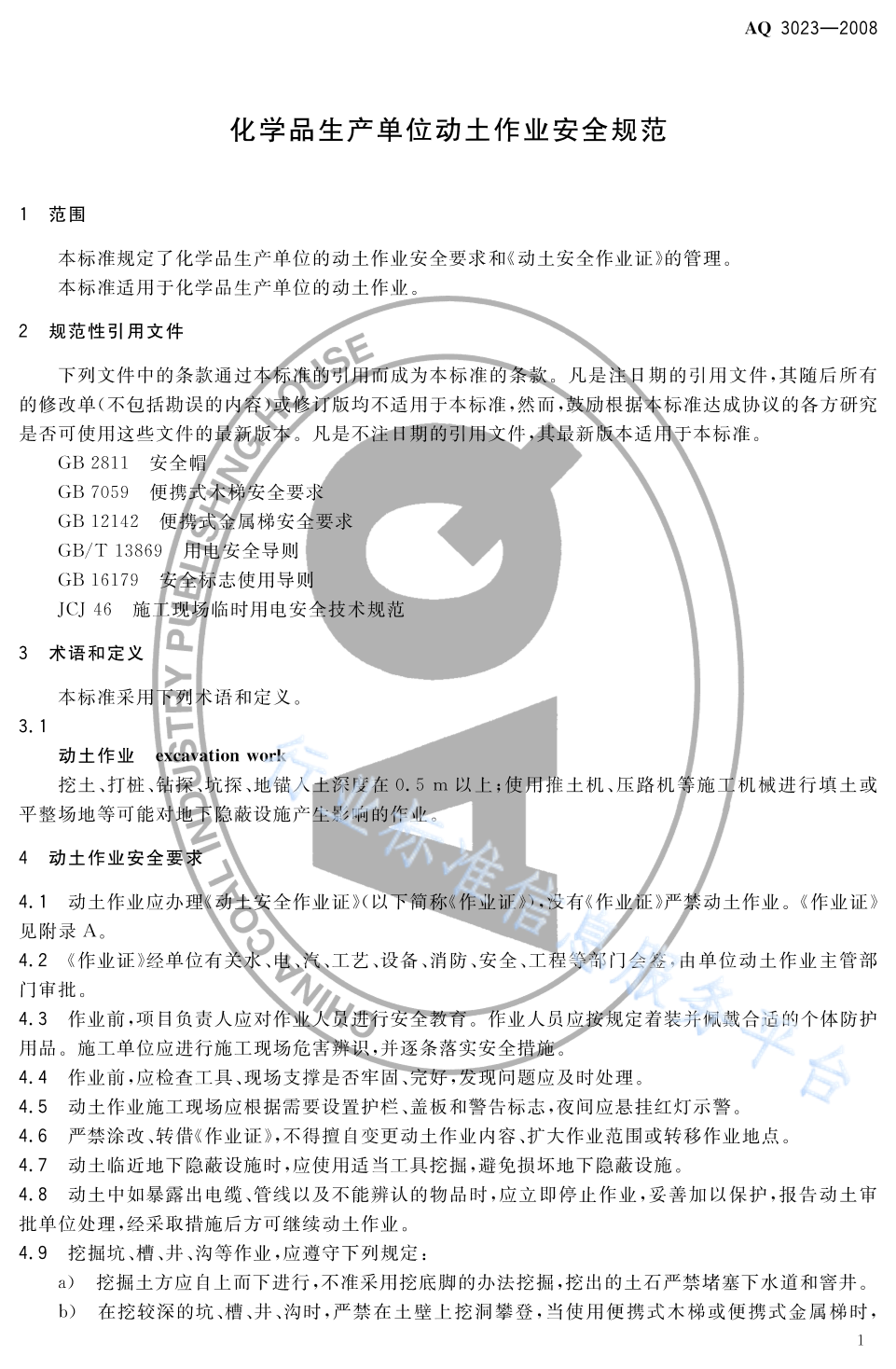 AQ 3023-2008 化学品生产单位动土作业安全规范