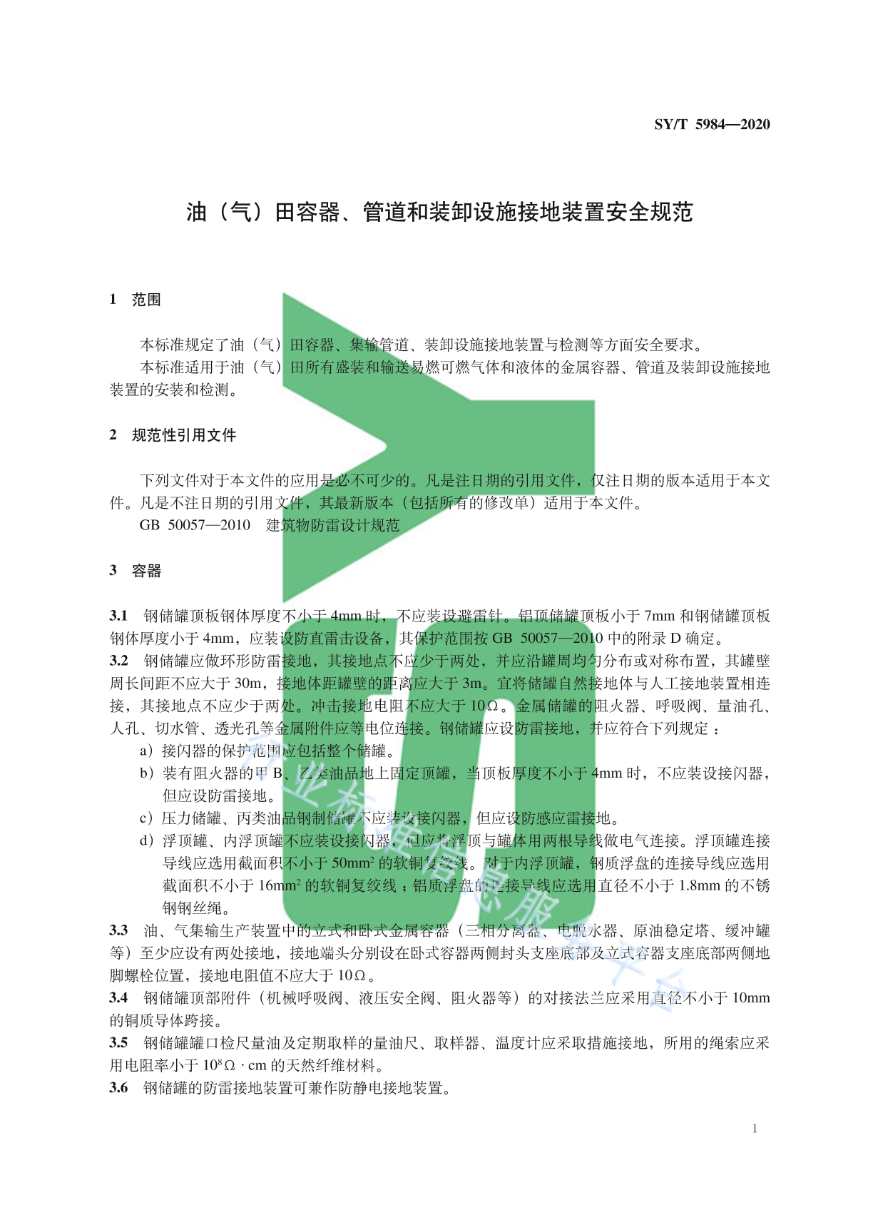 SY/T 5984-2020 油(气)田容器、管道和装卸设施接地装置安全规范