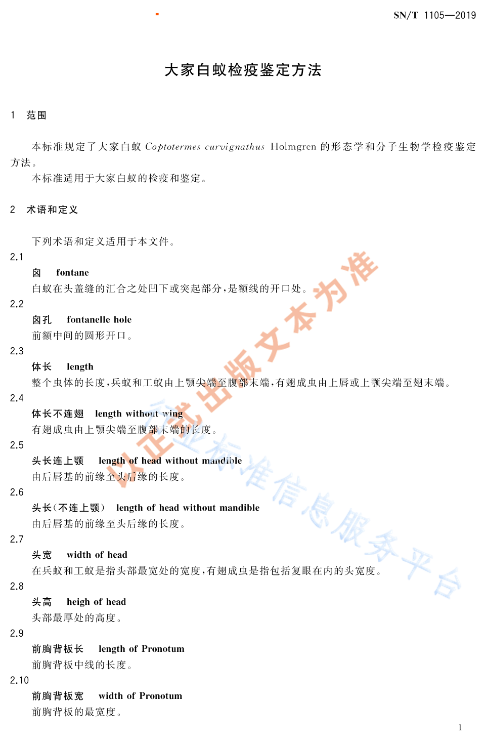 SN/T 1105-2019 大家白蚁检疫鉴定方法